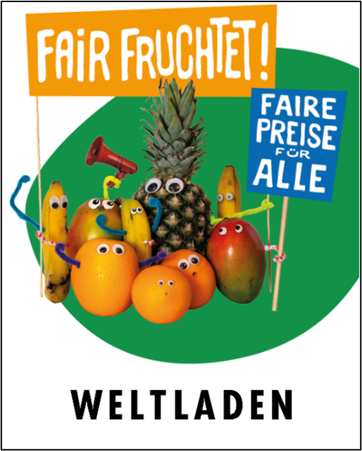 Zum Weltladentag am 9. Mai macht der Weltladen Dieburg auf schlechte Arbeitsbedingungen und unfair verteilte Gewinne im Handel mit Orangen, Mangos und Bananen aufmerksam – gemeinsam mit 300 Weltläden bundesweit.