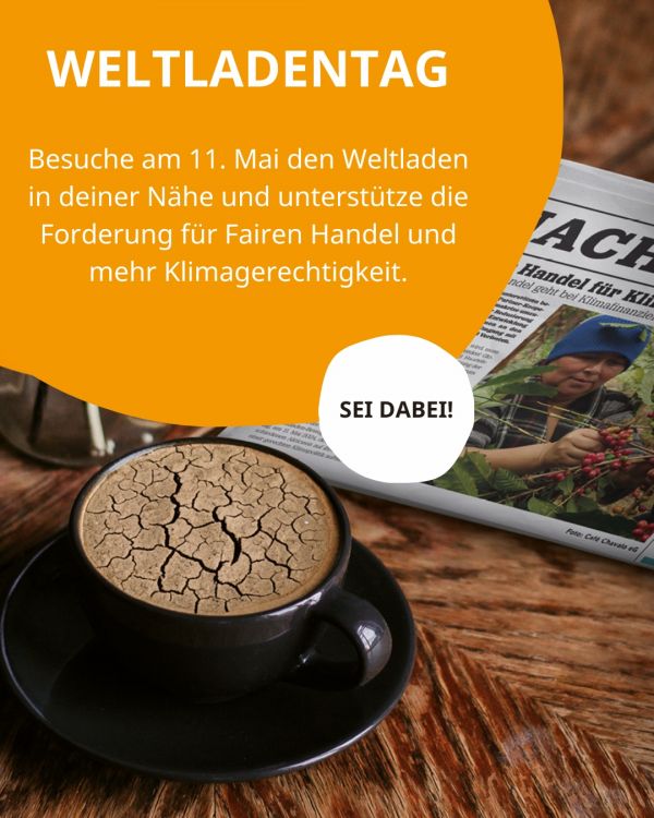 Eine klimagerechte Welt braucht andere politische Rahmenbedingungen. Die Folgen des Klimawandels sind in vielen Ländern schon dramatisch spürbar. Zum Weltladentag, am 11. Mai 2024 fordern bundesweit die Weltläden, dass für Klimaschäden endlich Verantwortung übernommen wird.